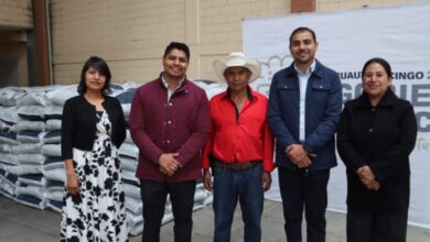 Entrega alcalde Omar Muñoz fertilizante a productores de San Lorenzo Almecatla